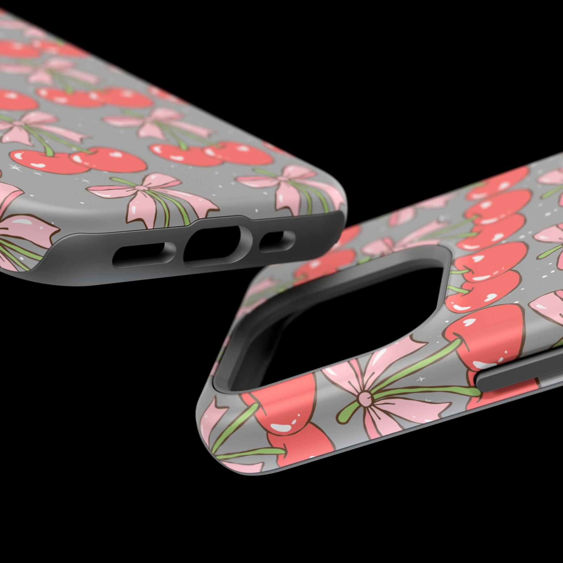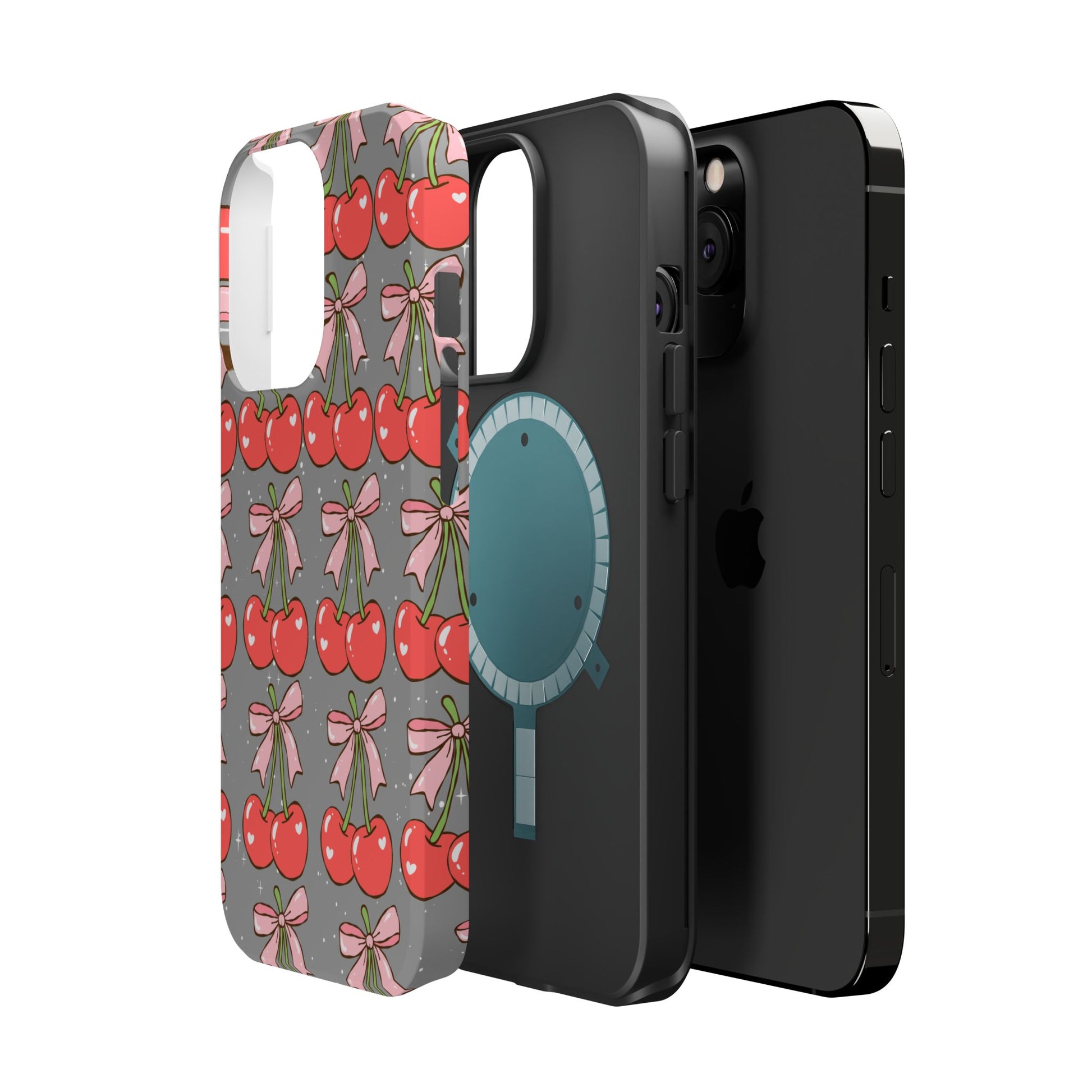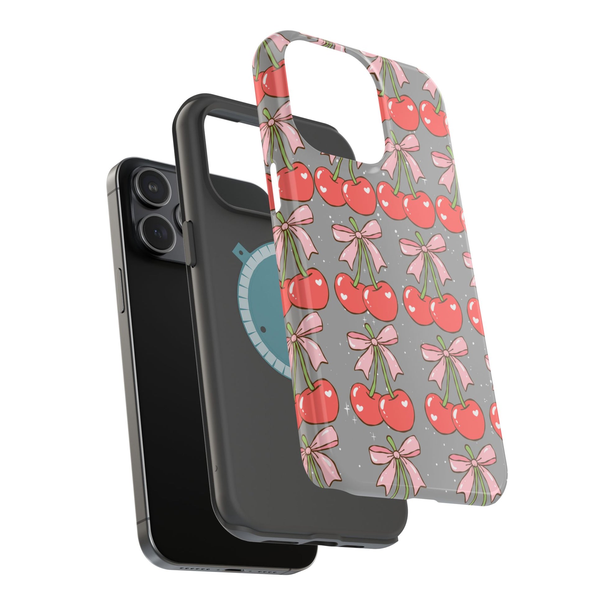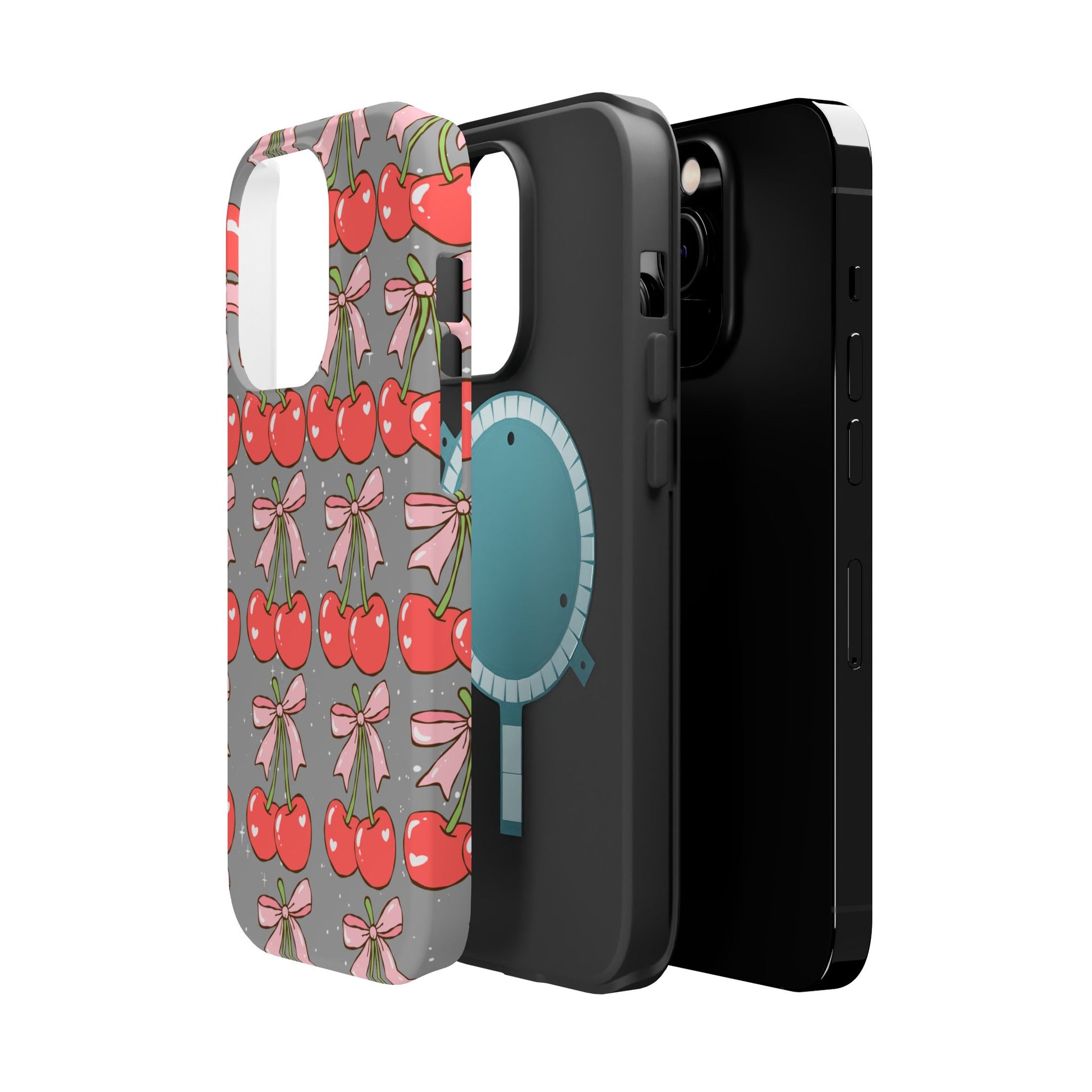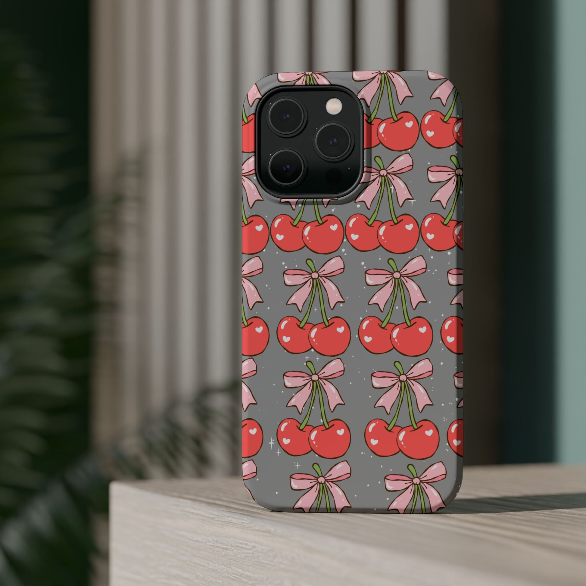 Introducing a vibrant and stylish Magnetic Impact-Resistant Case that blends protection with personality. Designed to make a statement, this case features a fun cherry pattern adorned with playful bows, perfect for those who love a pop of color in their everyday life. Whether you're headed to a summer picnic or attending a festive gathering, this case adds an upbeat vibe to your outfit while ensuring your phone remains safe. Ideal for adults and especially appealing to younger audiences who enjoy trendy accessories, it’s the perfect gift for birthdays, holidays, or just because! Celebrate life’s moments with flair, featuring durable construction and compatibility with MagSafe® accessories, this case is as functional as it is fashionable.