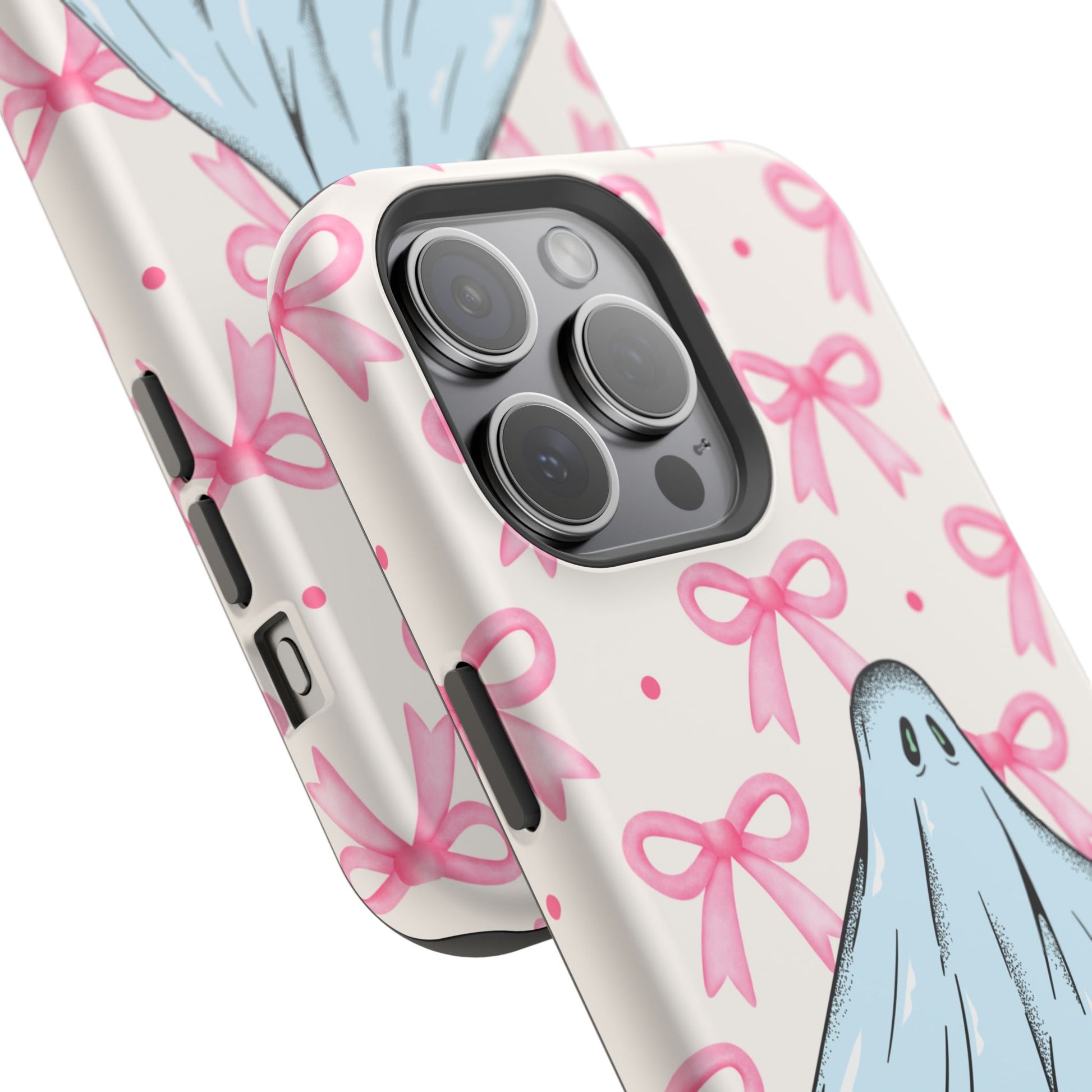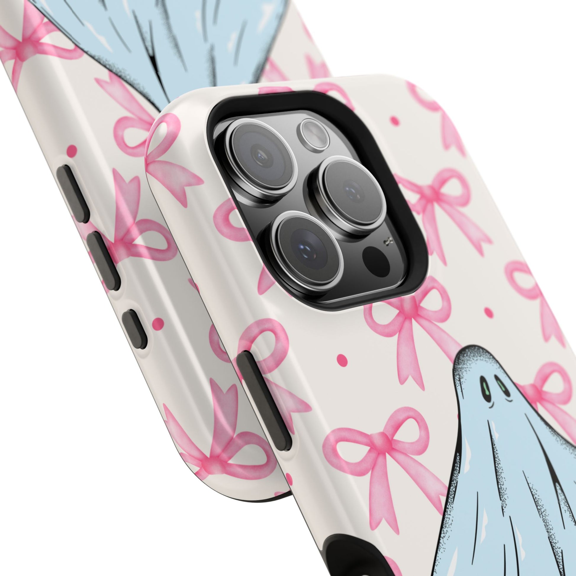 This Magnetic Impact-Resistant Case is the perfect blend of style and protection for your phone. Featuring a charming ghost design set against playful pink bows, this case exudes a whimsical vibe that brightens up your everyday life. Ideal for young adults and teens, it’s a trendy accessory for anyone who loves unique designs and wants to keep their phone safe. Whether you're preparing for Halloween, looking to celebrate a friend's birthday, or just want to add a fun touch to your daily routine, this case fits any occasion gracefully. With its robust construction and vibrant colors, it promises to be both a fashion statement and a reliable shield for your device.