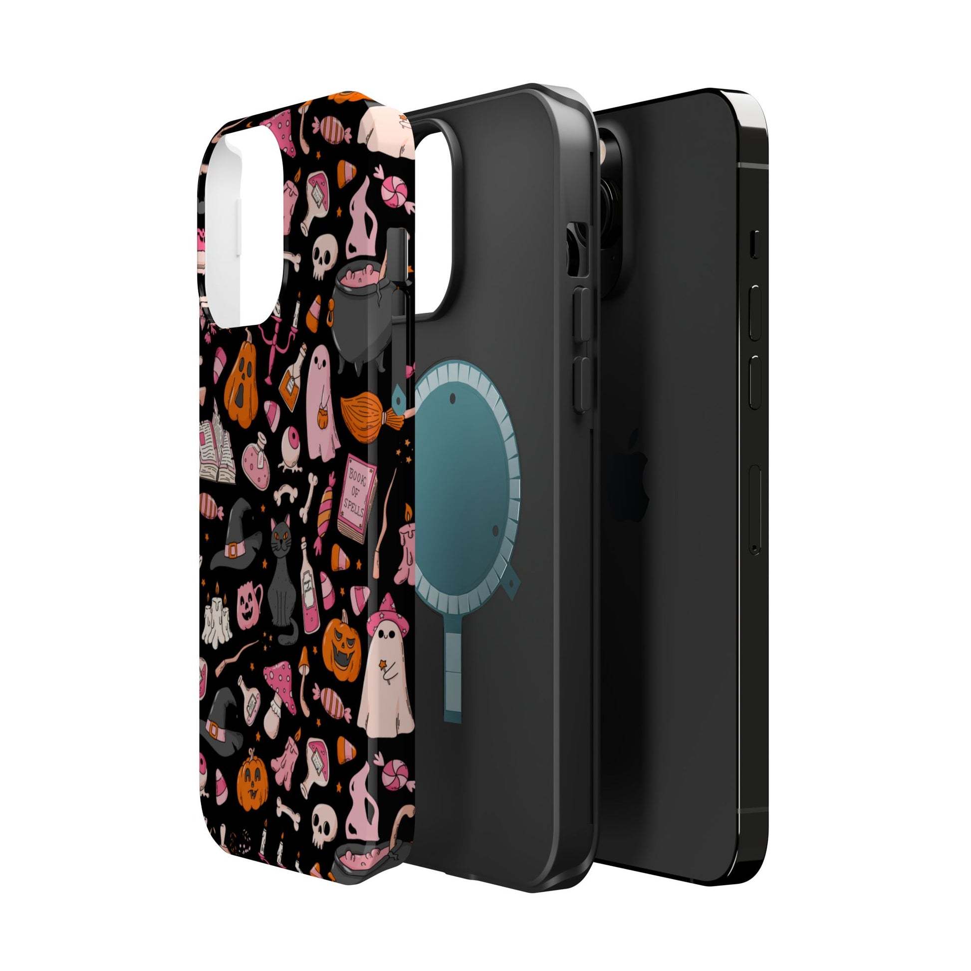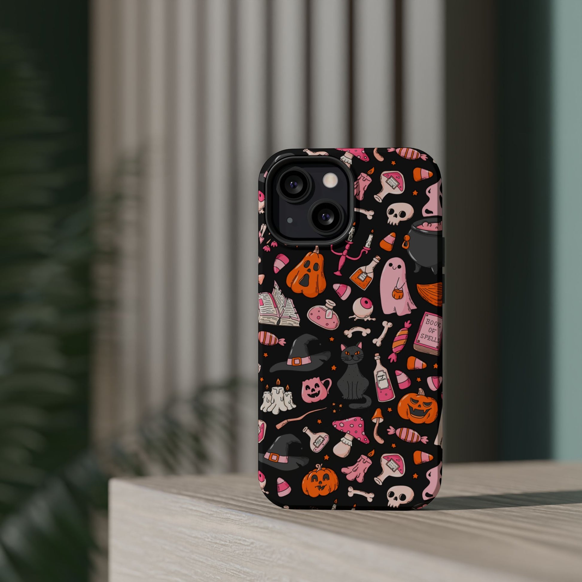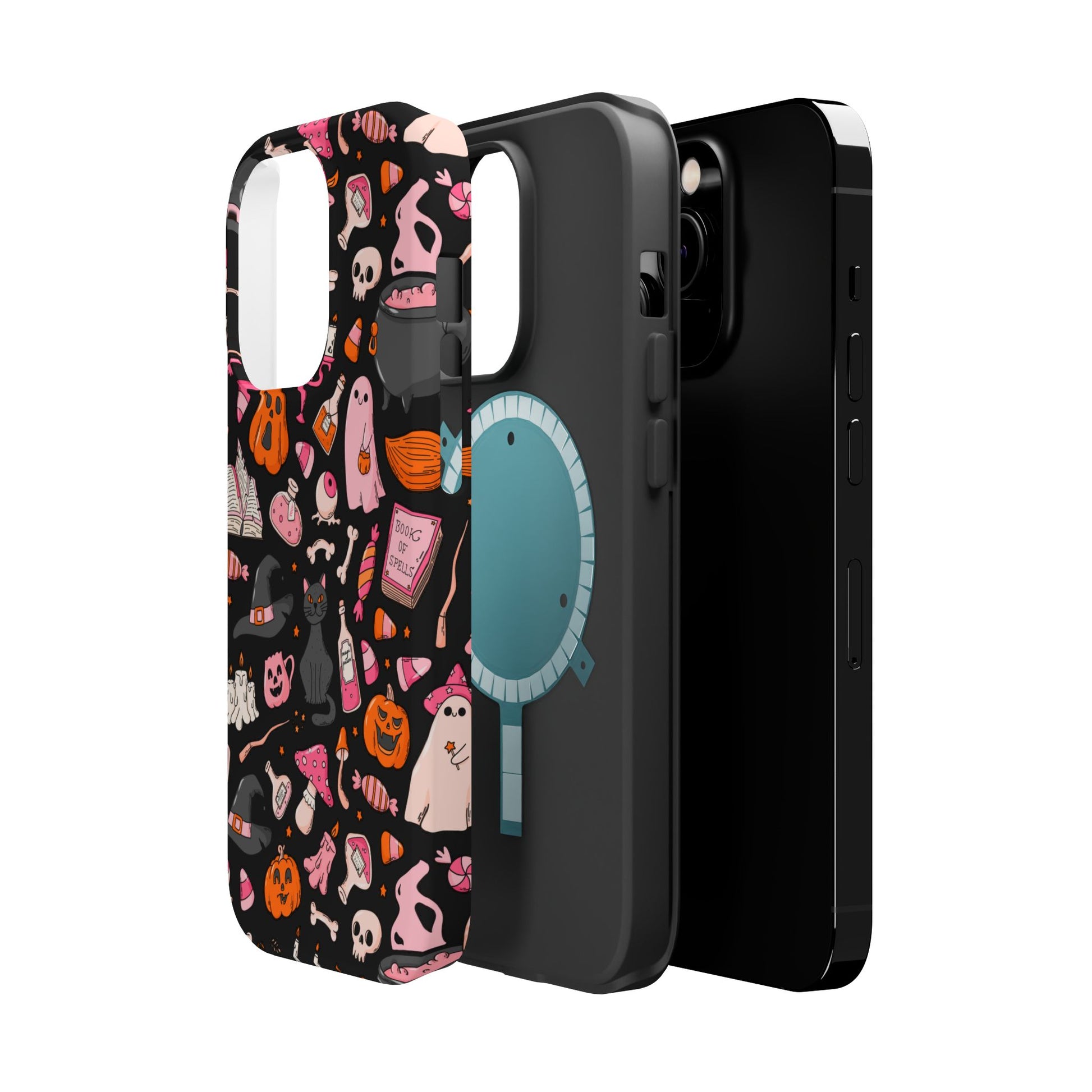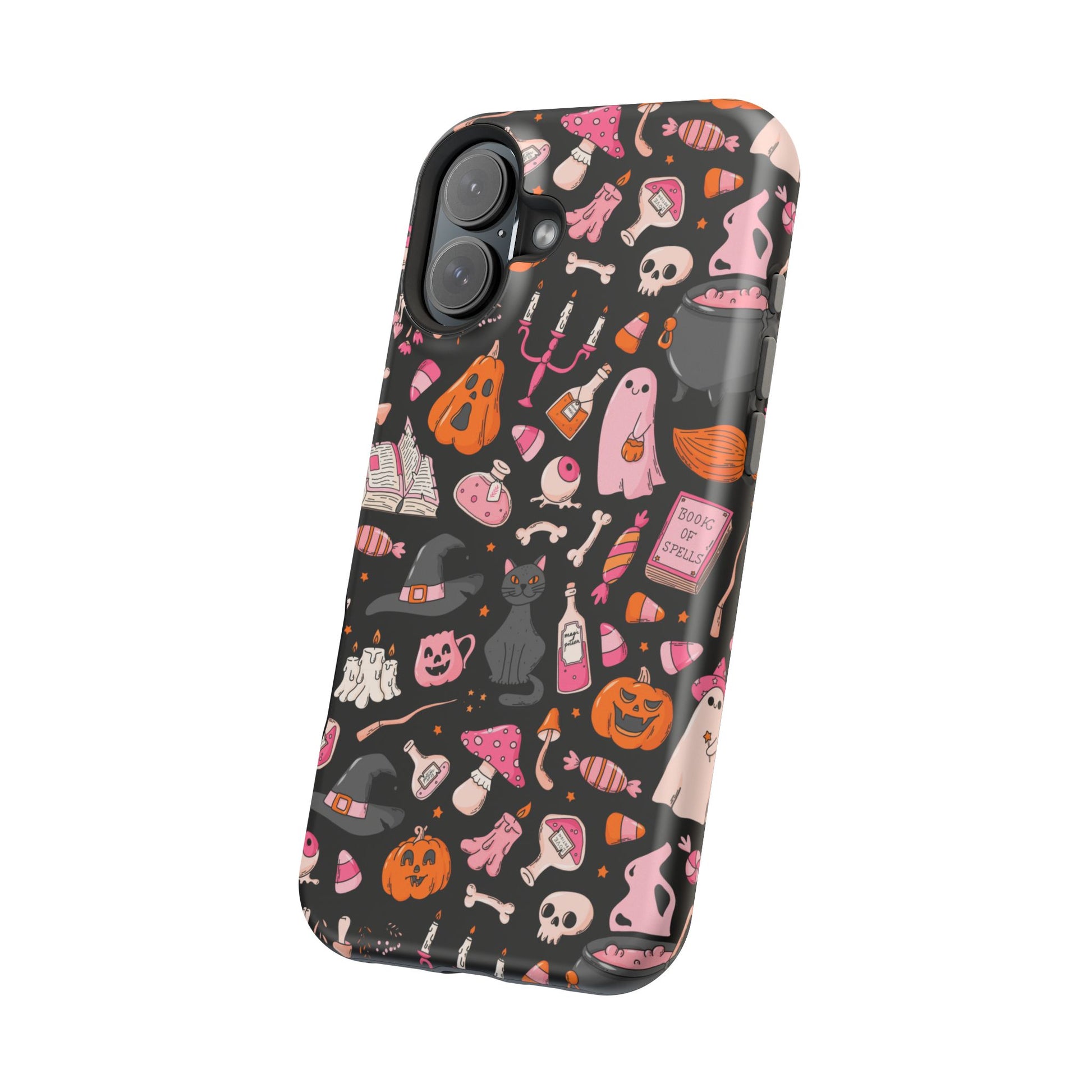 Elevate your phone's style with this vibrant Magnetic Impact-Resistant Case. Designed for those who love fun and quirky aesthetics, this case showcases a delightful Halloween-themed print filled with ghosts, pumpkins, and candy that captures a playful spirit. Its durable construction promises to keep your phone safe from scratches and minor bumps, making it perfect for everyday use. Whether you're attending a Halloween party, celebrating the spooky season, or just want to add a festive touch to your tech, this case fits seamlessly into any lifestyle. Ideal for adults looking to express their love for vibrant art and seasonal celebrations!
