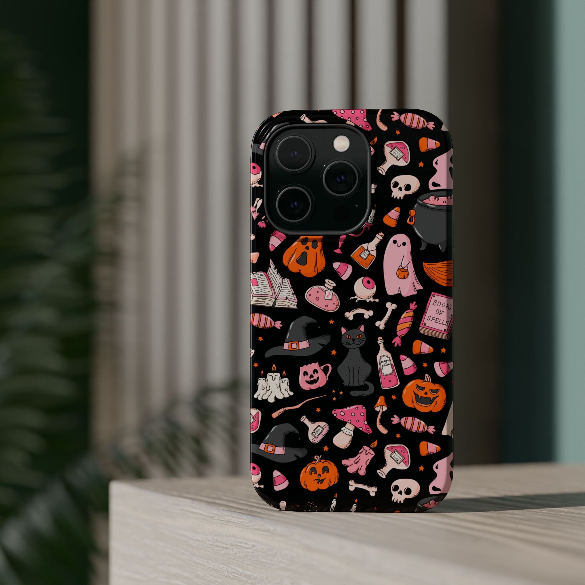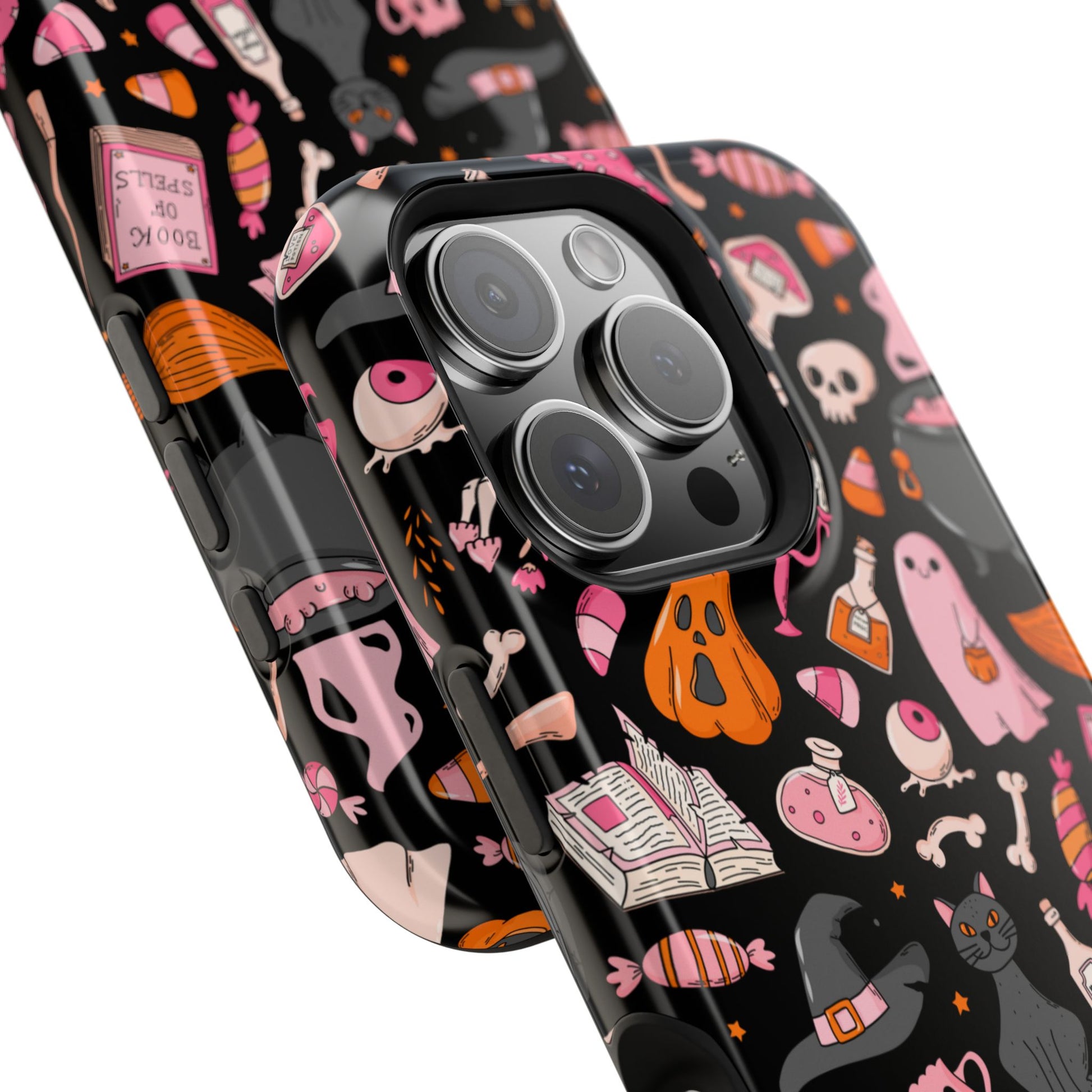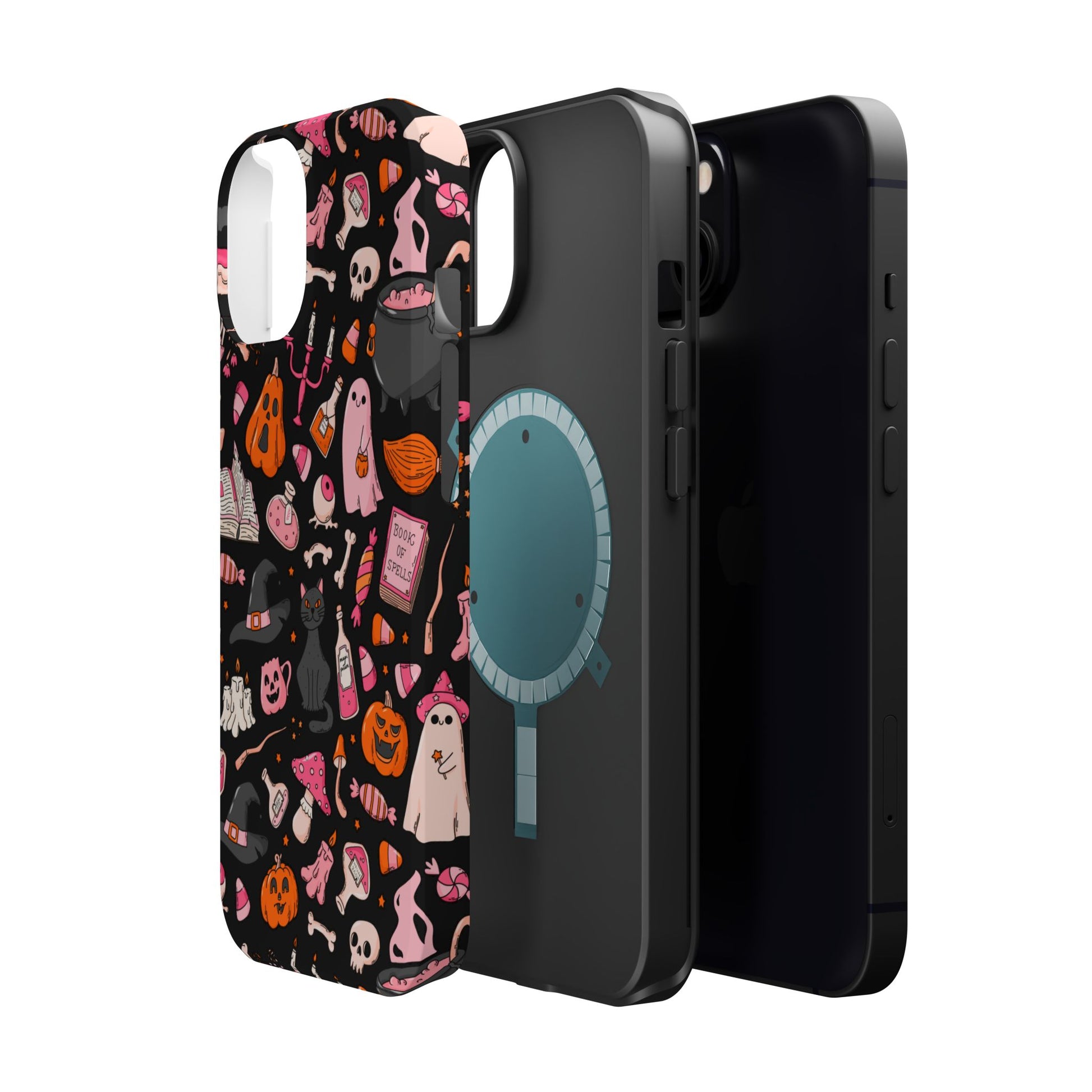 Elevate your phone's style with this vibrant Magnetic Impact-Resistant Case. Designed for those who love fun and quirky aesthetics, this case showcases a delightful Halloween-themed print filled with ghosts, pumpkins, and candy that captures a playful spirit. Its durable construction promises to keep your phone safe from scratches and minor bumps, making it perfect for everyday use. Whether you're attending a Halloween party, celebrating the spooky season, or just want to add a festive touch to your tech, this case fits seamlessly into any lifestyle. Ideal for adults looking to express their love for vibrant art and seasonal celebrations!