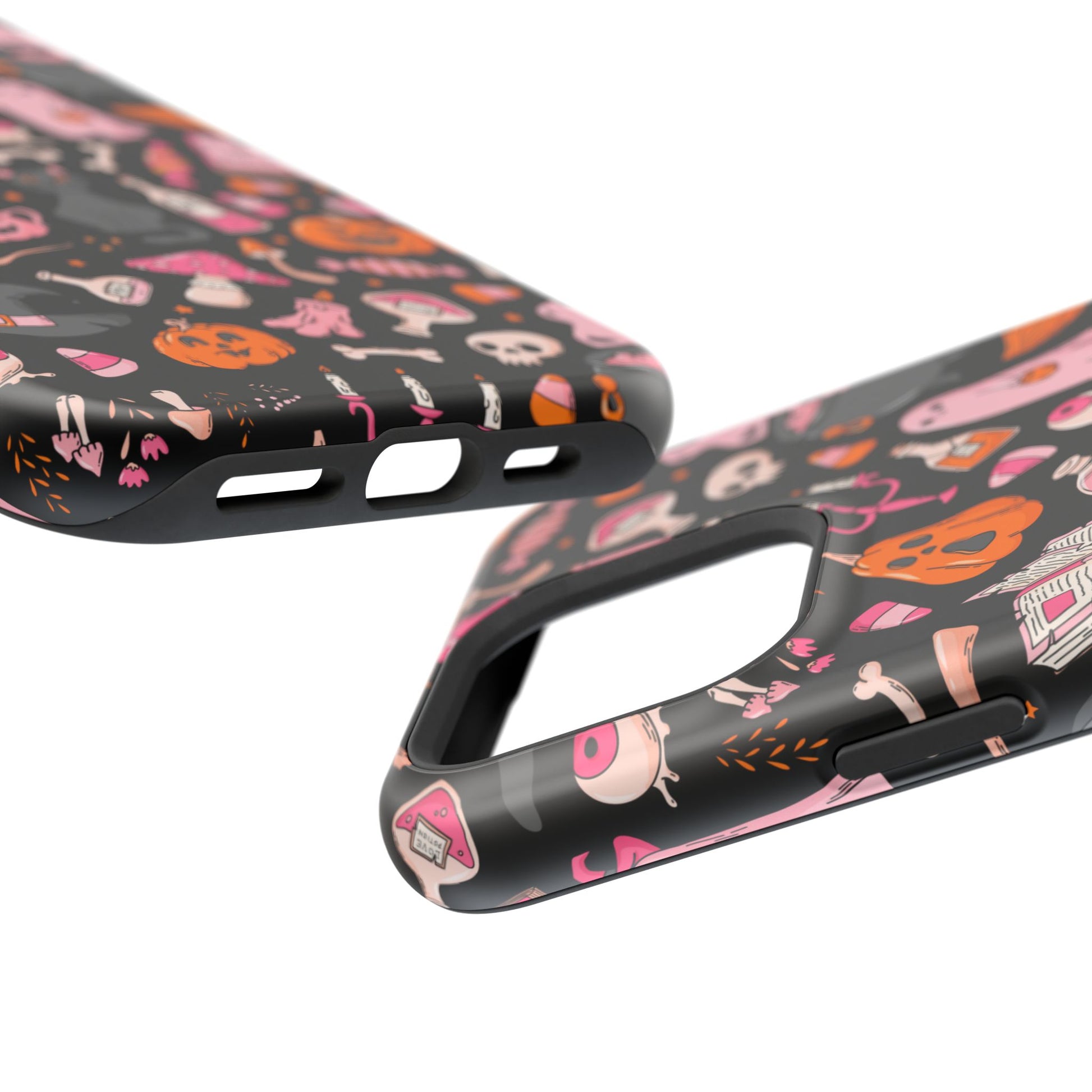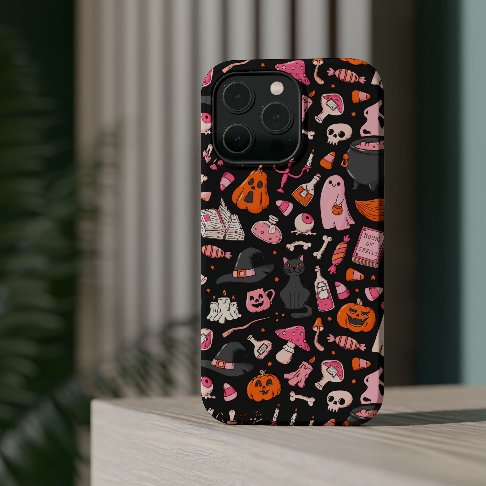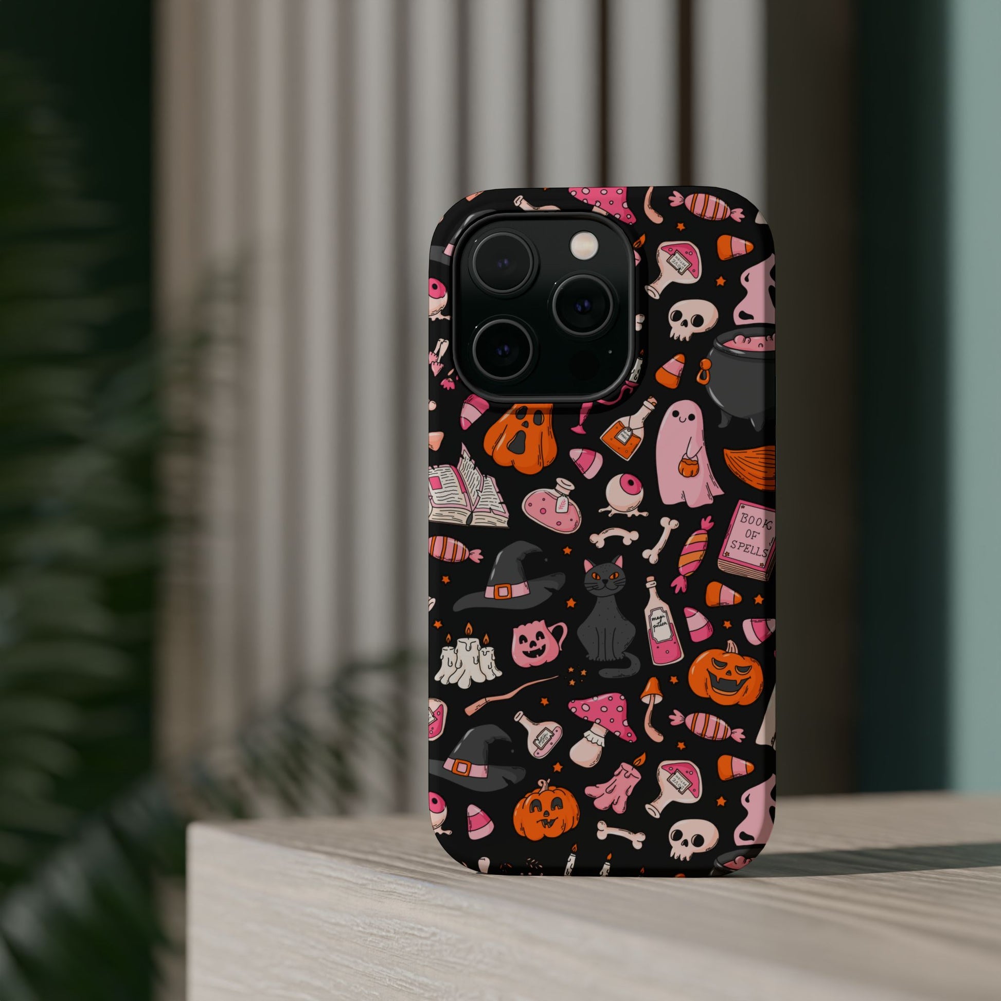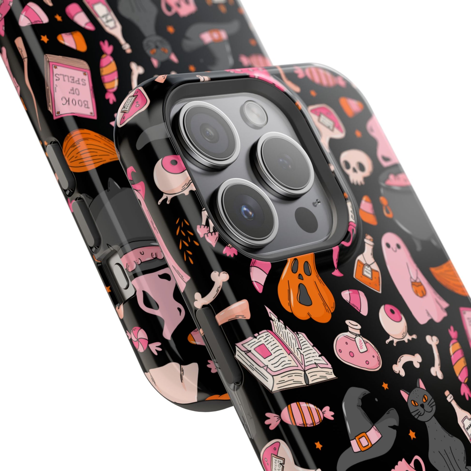 Elevate your phone's style with this vibrant Magnetic Impact-Resistant Case. Designed for those who love fun and quirky aesthetics, this case showcases a delightful Halloween-themed print filled with ghosts, pumpkins, and candy that captures a playful spirit. Its durable construction promises to keep your phone safe from scratches and minor bumps, making it perfect for everyday use. Whether you're attending a Halloween party, celebrating the spooky season, or just want to add a festive touch to your tech, this case fits seamlessly into any lifestyle. Ideal for adults looking to express their love for vibrant art and seasonal celebrations!