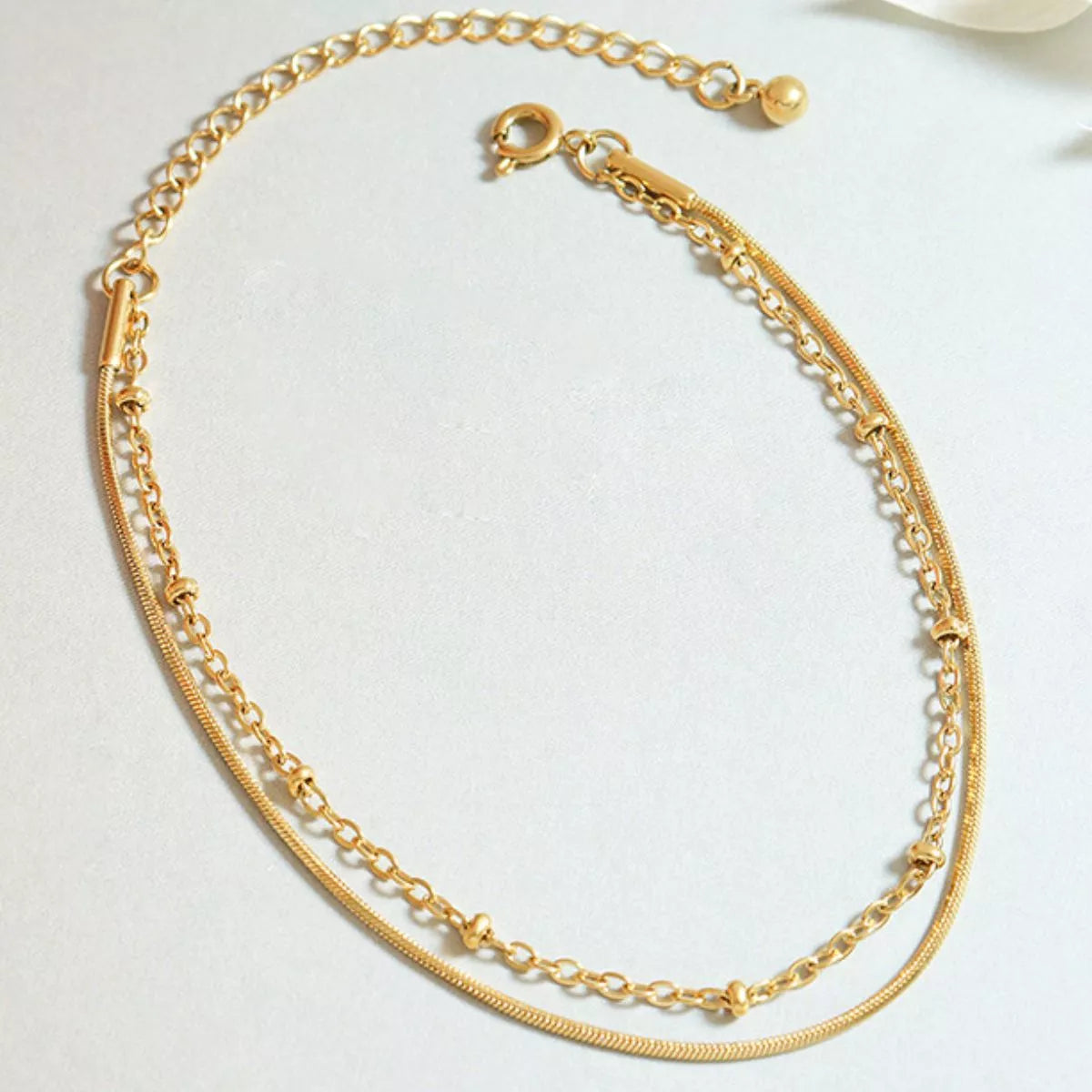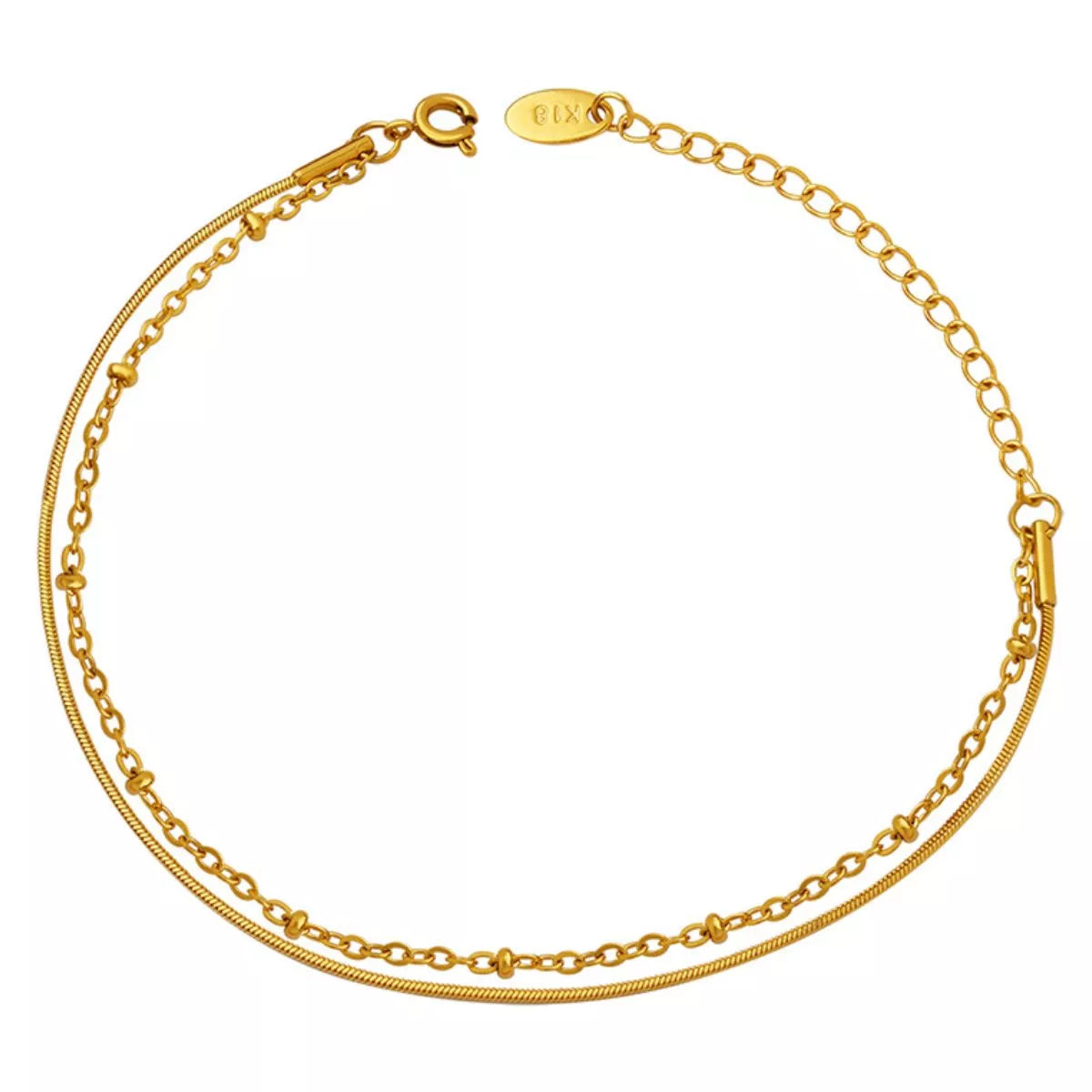 The Golden Duo Bracelet is the perfect balance of minimalism and elegance. Featuring two sleek layers—one smooth, one with delicate chain details—this bracelet offers a modern stacked look in a single piece. Ideal for both casual days and chic evenings, it’s a versatile essential that elevates any outfit with ease.